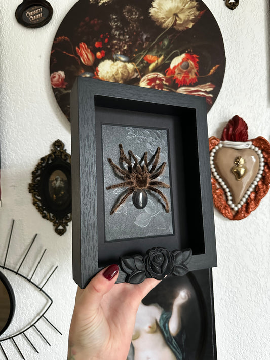 Mue de mygale Psalmopoeus irminia et pierre