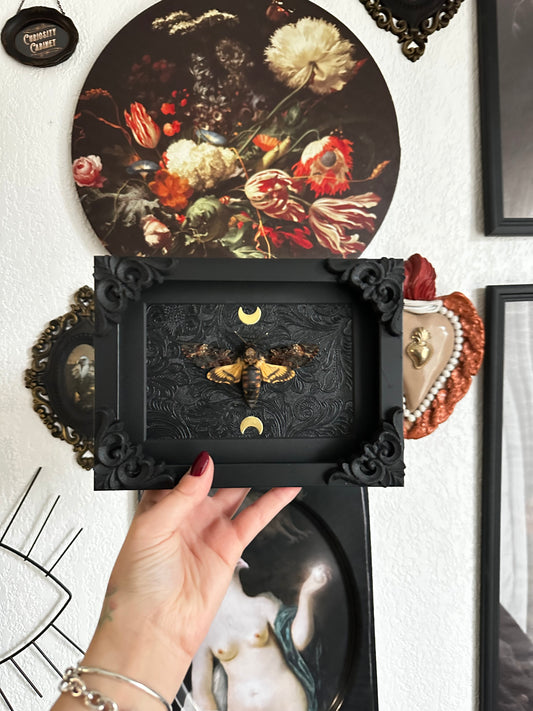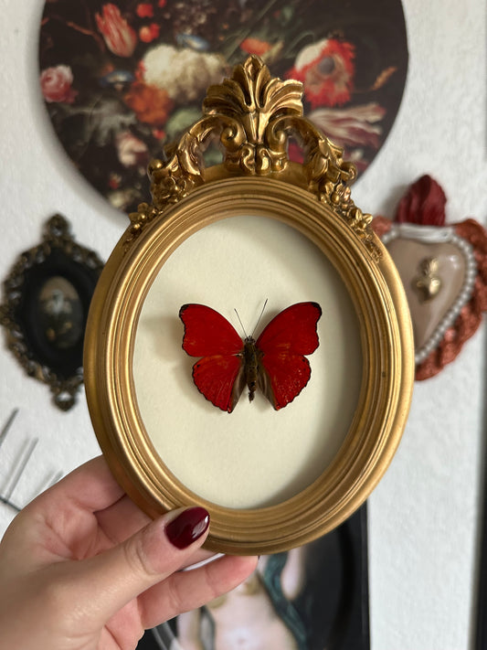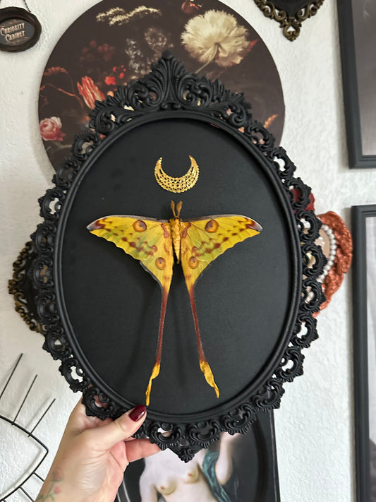 -20% Halloween Collection – Véritable papillon orange naturalisé sur fond clair de lune noir