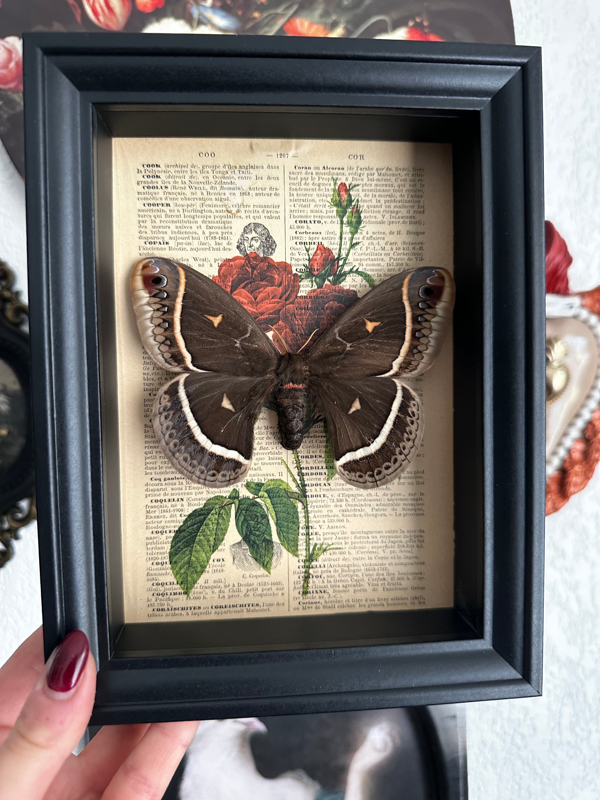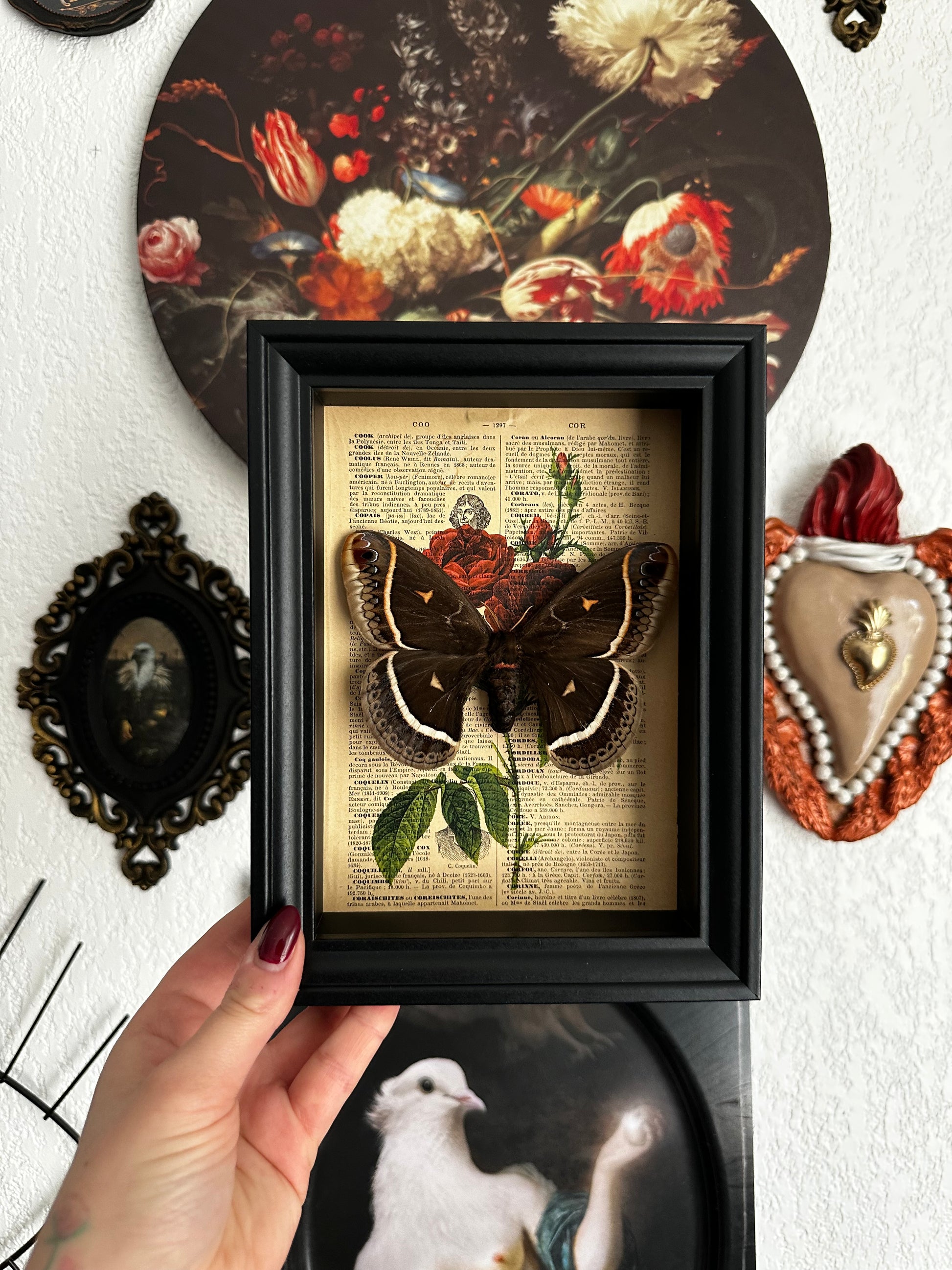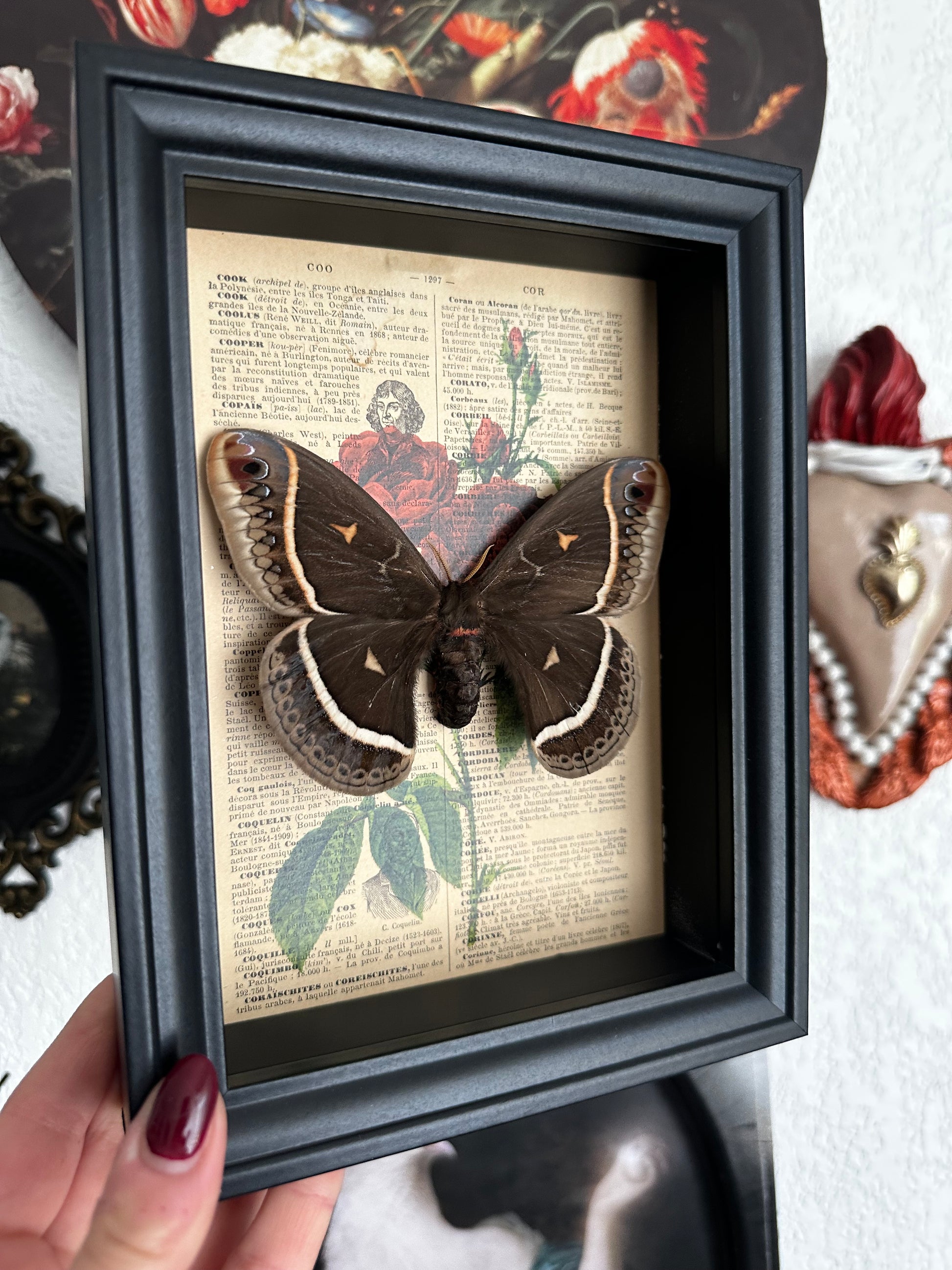 Cette création unique s'intègre parfaitement dans tout intérieur, que ce soit accrochée au mur comme pièce maîtresse ou posée sur une étagère. Elle trouve sa place aussi bien dans un cabinet de curiosités ou une collection de bizarreries que dans un espace dédié à l'entomologie ou à la taxidermie. C’est également un objet de collection idéal pour l'observation ou l'étude de ce fascinant spécimen.